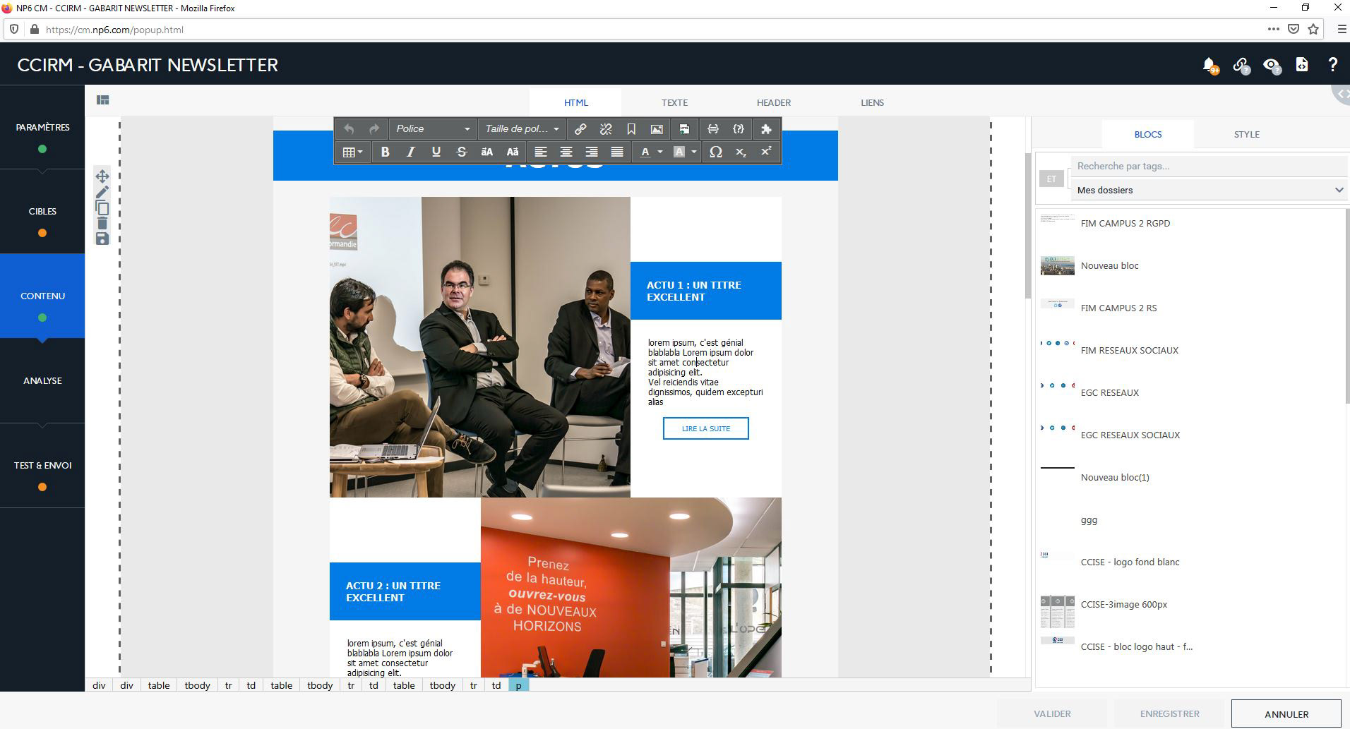 Quelques souvenirs d'emailing à la CCI, au Crédit Agricole et chez CLIKEA avec les outils NP6, Mailchimp et mon préféré : Brevo.